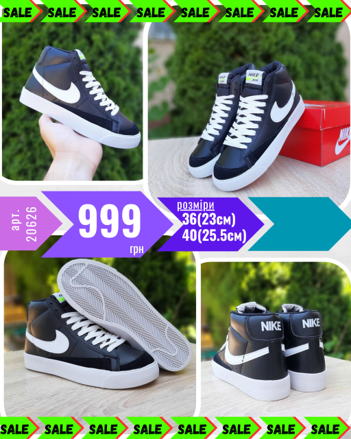 Nike Blazer Mid Чёрные на белой